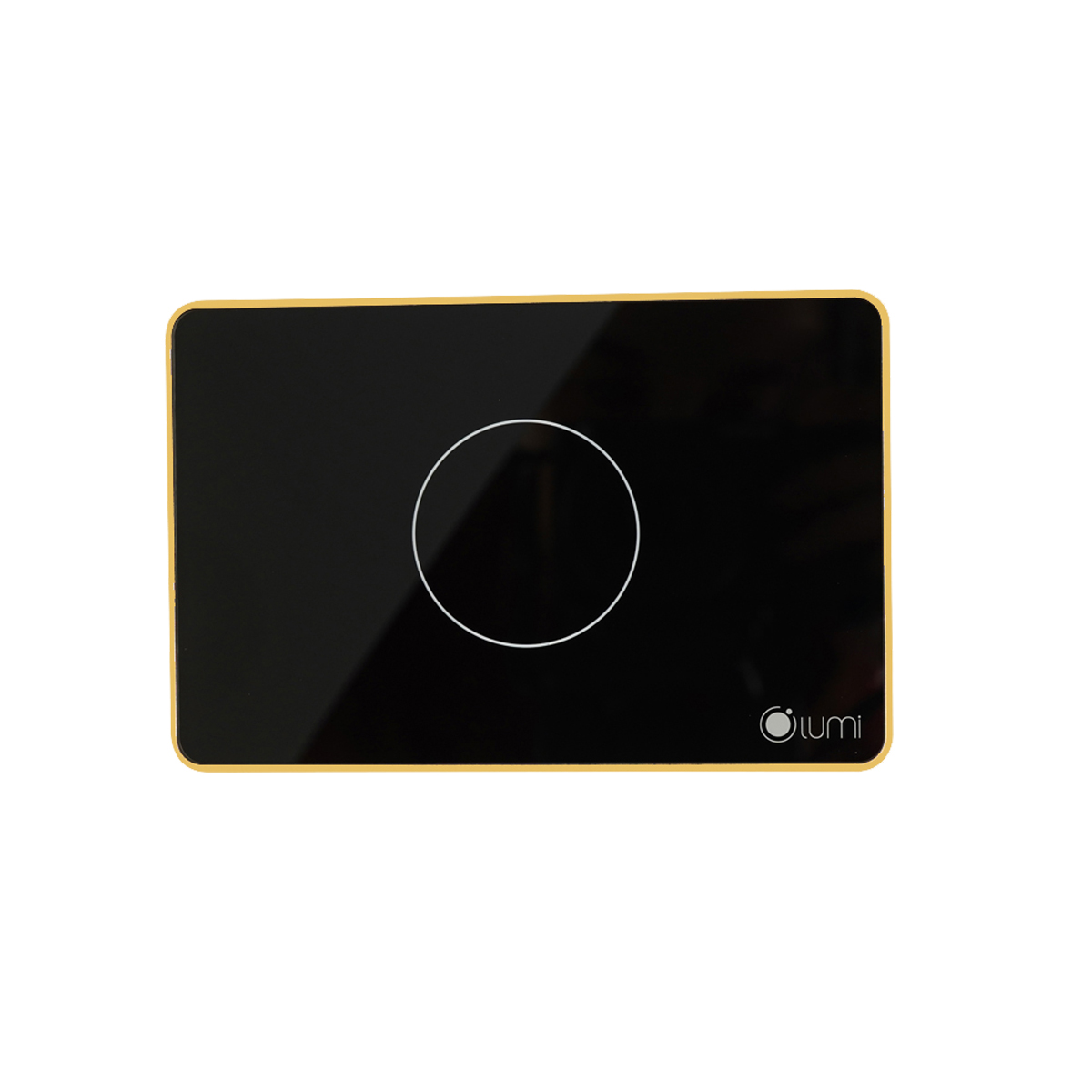 LIÊN HỆ: Công tắc 1 nút (2 chế độ) Lumi chữ nhật ngang kính phẳng viền bo cong vàng LM-S1B-Fy/CG/ND | Black