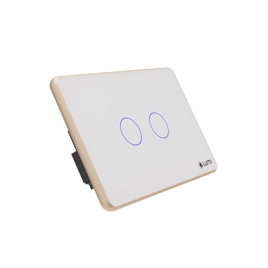 LIÊN HỆ: Công tắc 2 nút Lumi chữ nhật dọc kính phẳng viền thẳng champagne LM-S2N/DT | White