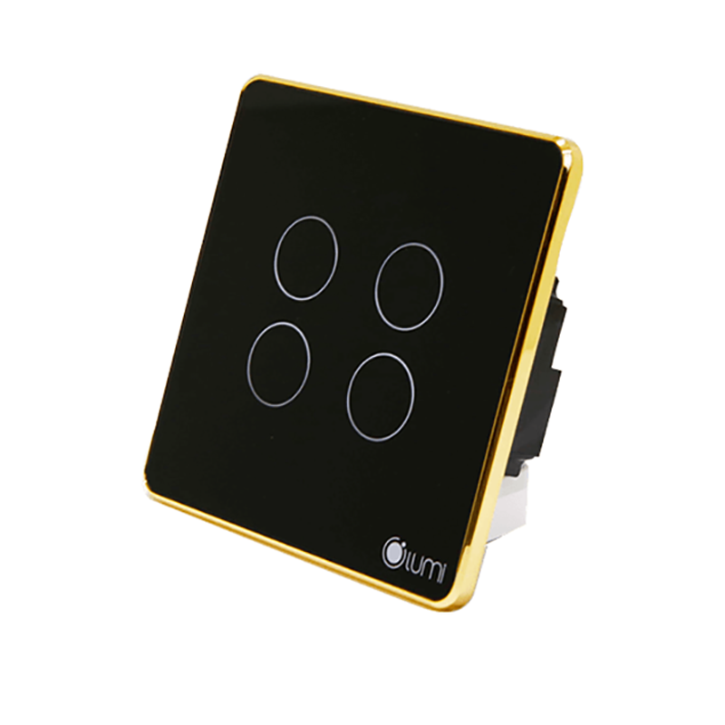LIÊN HỆ: Công tắc 4 nút (2 chế độ) Lumi vuông kính phẳng viền bo cong vàng LM-S4B-Fy/CG/VD | Black