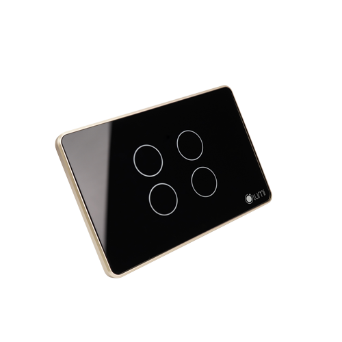LIÊN HỆ: Công tắc 4 nút Lumi chữ nhật dọc kính phẳng viền thẳng champagne LM-S4N/DD | Black