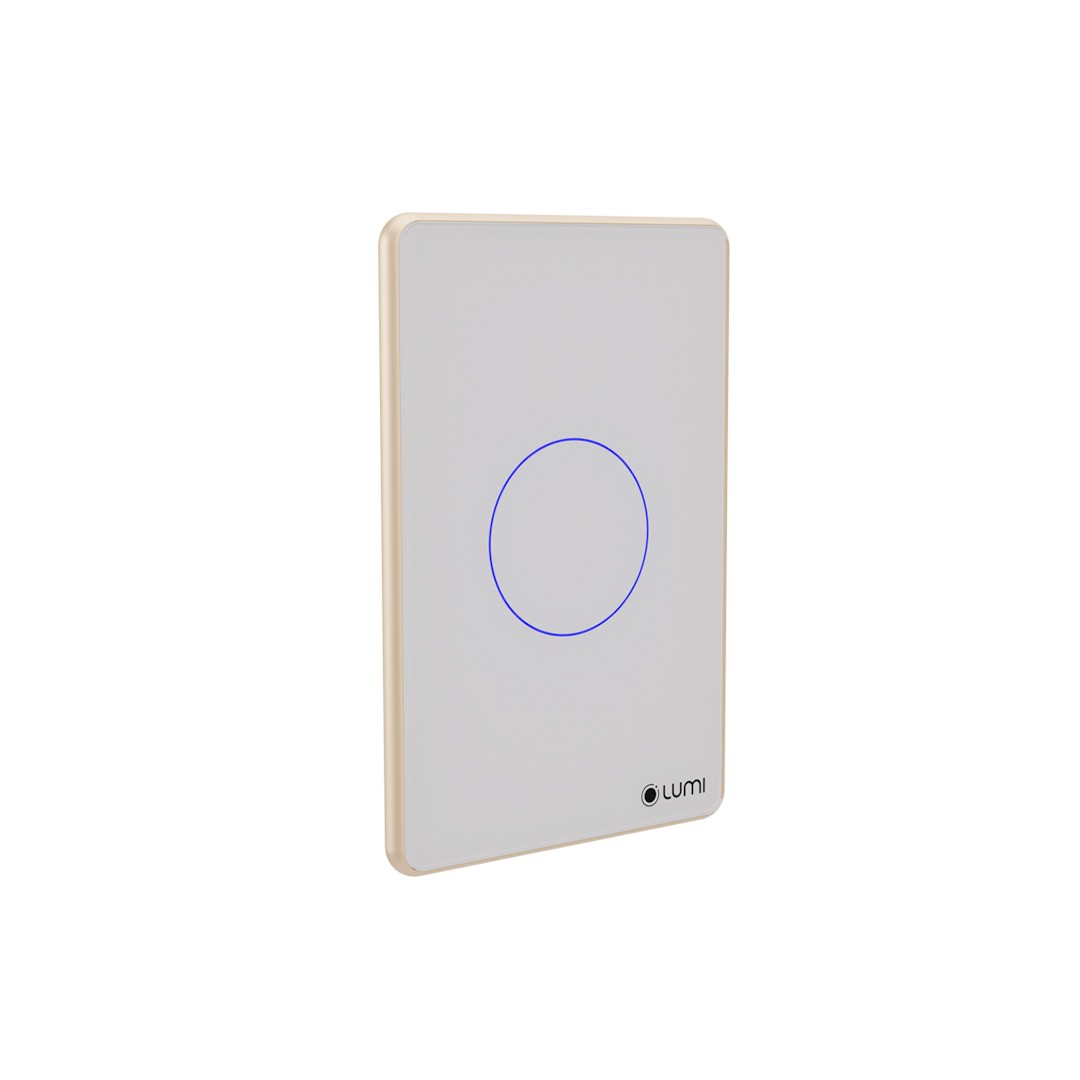 LIÊN HỆ: Công tắc công suất cao 1 nút Lumi chữ nhật dọc kính phẳng viền bo cong vàng LM-S1H-Fy/CG/DT | White