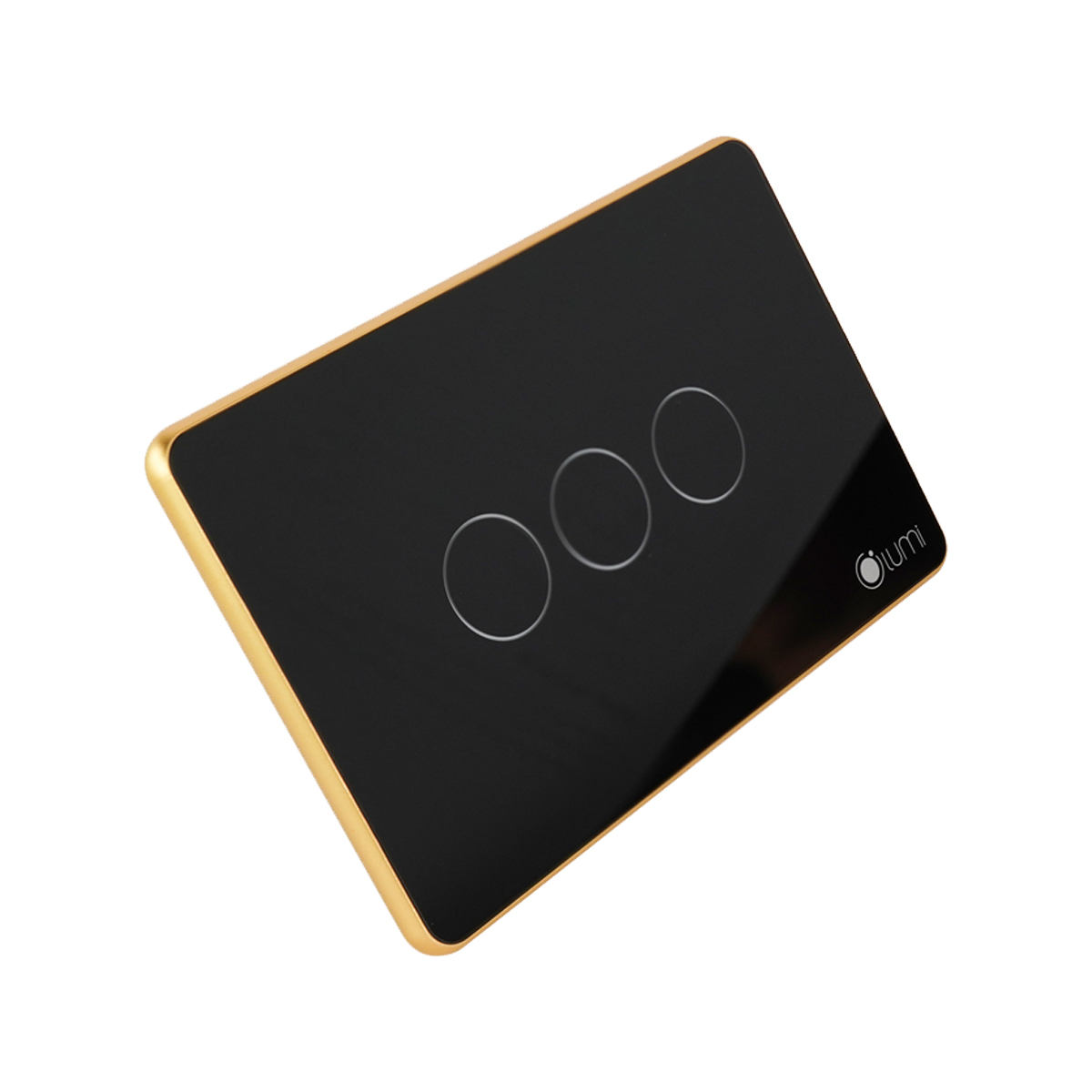 LIÊN HỆ: Công tắc công suất cao 3 nút Lumi chữ nhật ngang kính phẳng viền bo cong vàng LM-S3H-Fy/CG/ND | Black