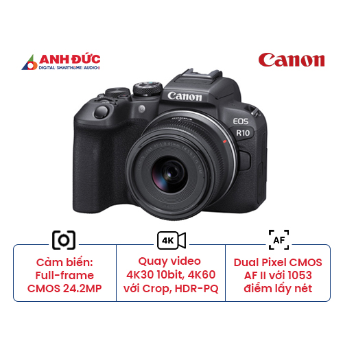 LIÊN HỆ: Máy ảnh Canon EOS R10 + Lens RF-S 18-45mm f/4.5-6.3 IS STM (Chính Hãng)